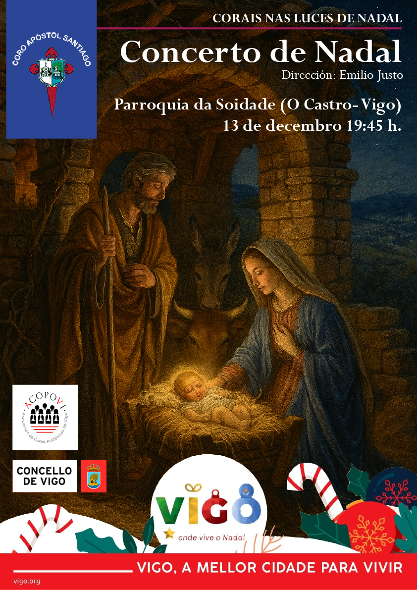 El 22 de noviembre, festividad de Santa Cecilia, el Coro Apóstol Santiago celebra la efemérides de su 20 cumpleaños con un gran concierto en el auditorio del Conservatorio Superior de Vigo, logrando un lleno total y deleitando a su público con una variada síntesis de su amplio repertorio.